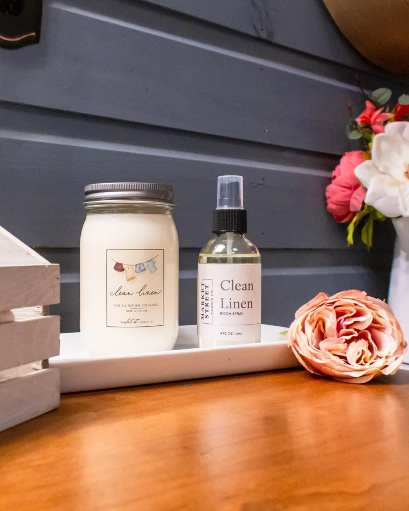 The Market Street Candle Co. logo has evolved over the years to better communicate our brand. The logo’s design reflects the simplicity, cleanliness, and classic nature of the brand. The logo is in Essential Black or Crisp White.